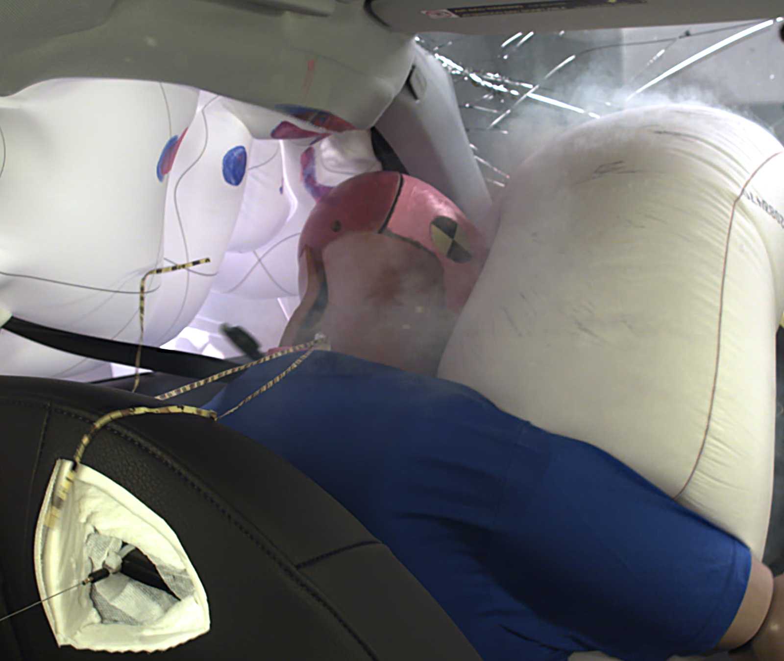 The frontal and side curtain airbags worked well together to keep the head from coming close to any stiff structure or outside objects that could cause injury.