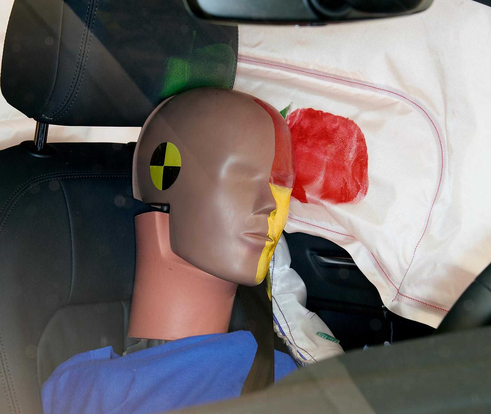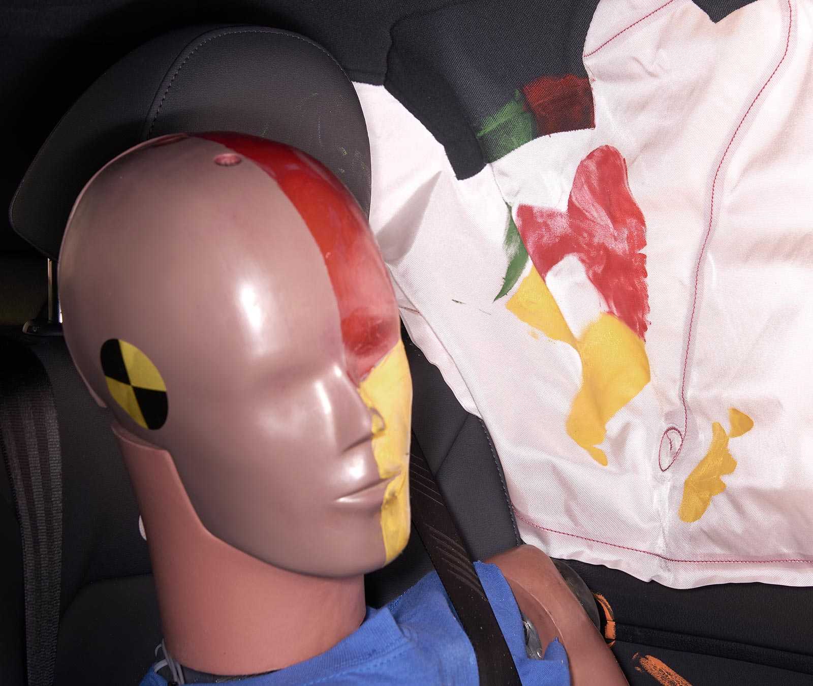 Smeared greasepaint shows where the driver dummy’s head was protected from being hit by hard structures by the side airbags.