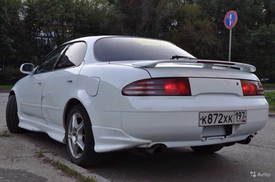 На фото показана Toyota Ceres, которая оснащалась узкой головной оптикой с небольшой решеткой радиатора. Дополнительные воздухозаборники имелись в массивном бампере. Задние двери были выполнены с заходом на крыло, что упрощало посадку и высадку пассажиров. На боковых панелях дверей имелась пластиковая защитная накладка. Узкая кормовая светотехника разделялась черной панелью, закрепленной на крышке багажника. Обозначение модели наносилось крупными буквами на бампере ниже проема багажного отделения.