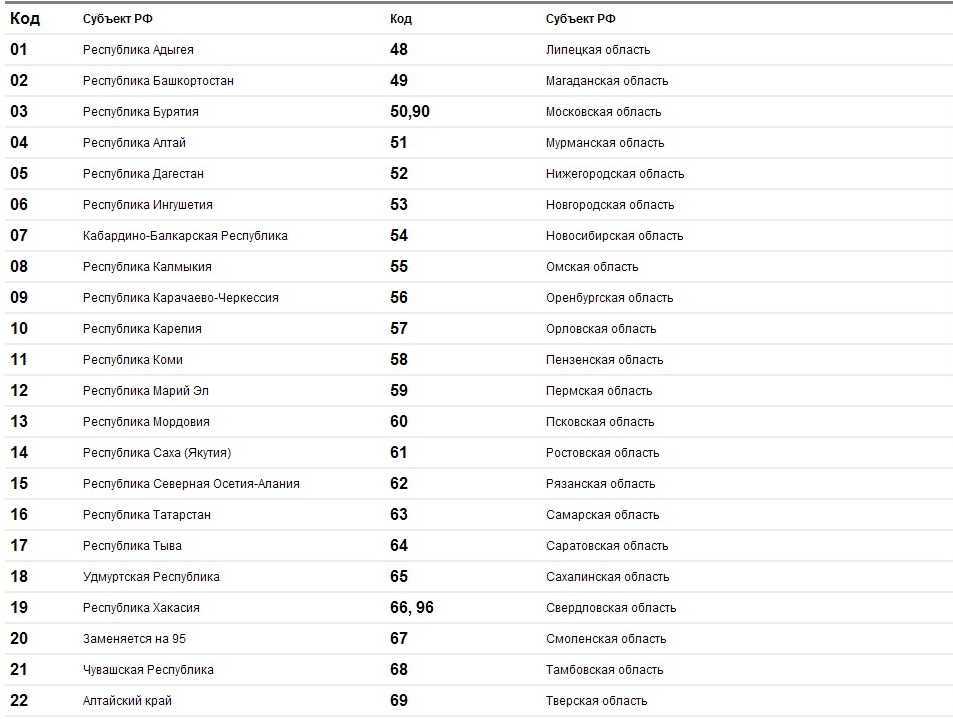 Автомобильные коды регионов России на номерах 2021 (Таблица)