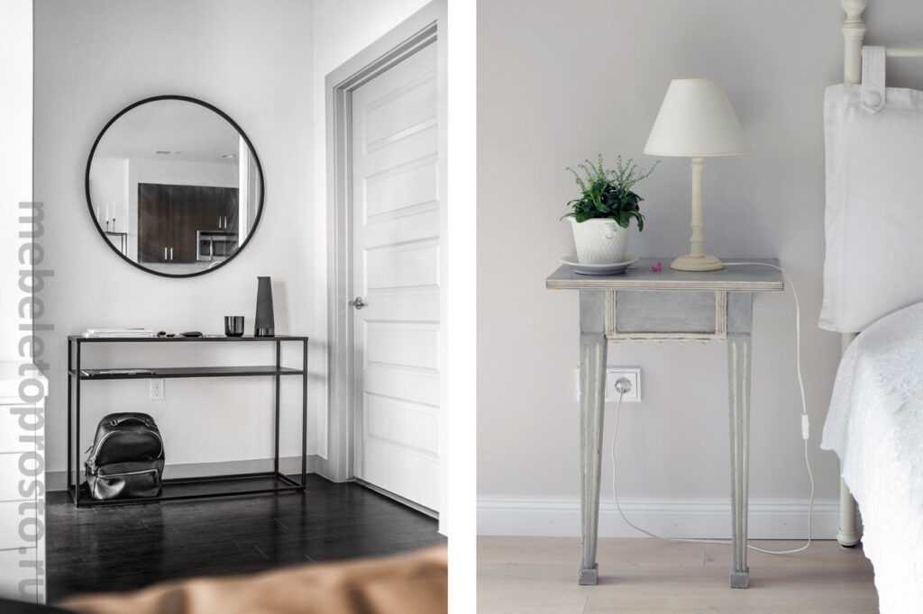 Установленная при входе, такая мебель не только красива, но и полезна. На неё можно поставить сумочку, положить ключи или телефон, собрать какие-либо вещи, чтобы не забыть их перед выходом.