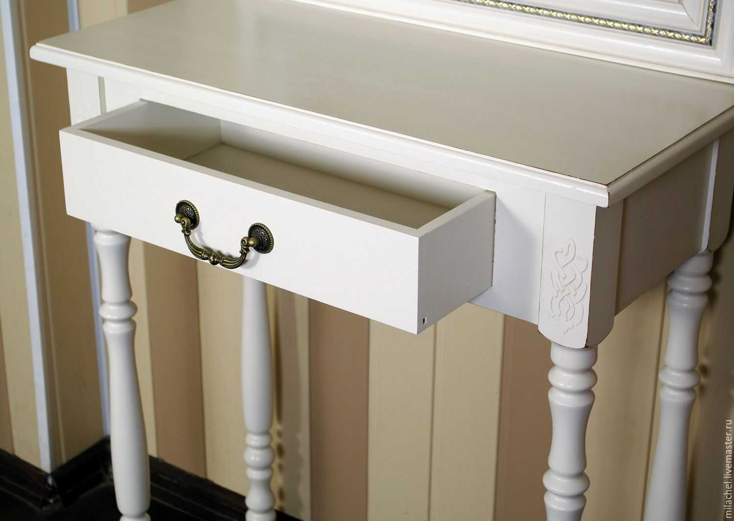 Обновлено 29.01.2023: Под столешницей консоли могут располагаться один или несколько ящиков.