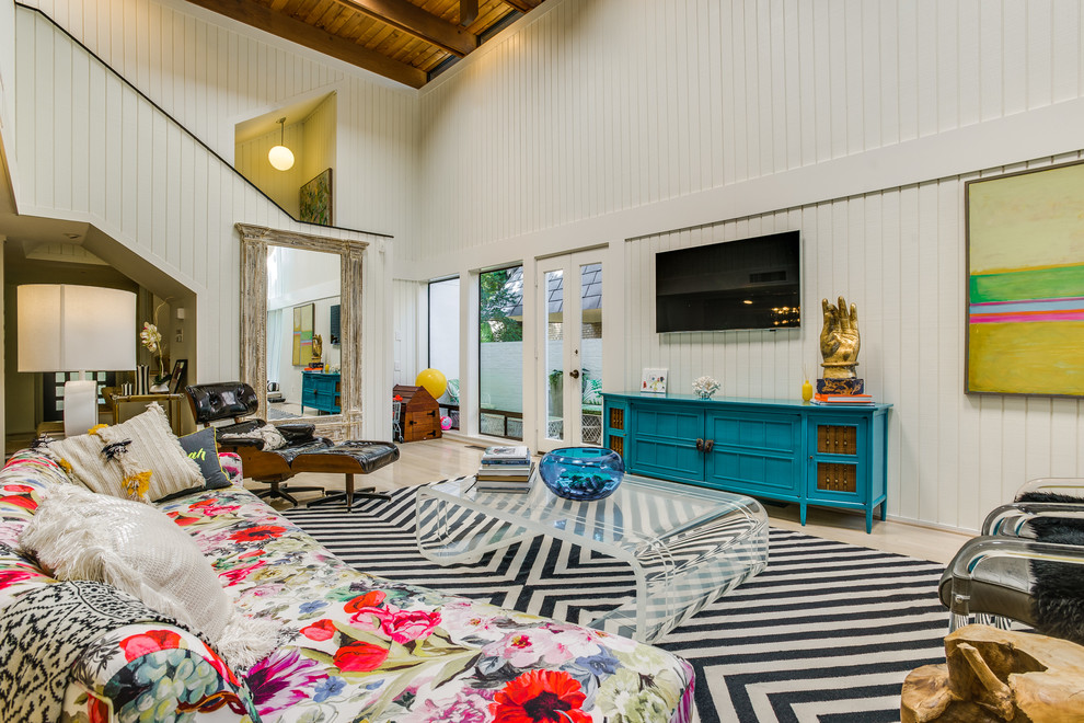 Распространенный прием — декор консолью яркого цвета. Размер консольного столика оптимален для цветового акцента — он не остается незамеченным, но не доминирует (в отличие, например, от дивана или шкафа). Яркие консоли на нейтральном фоне всегда приковывают взгляд.