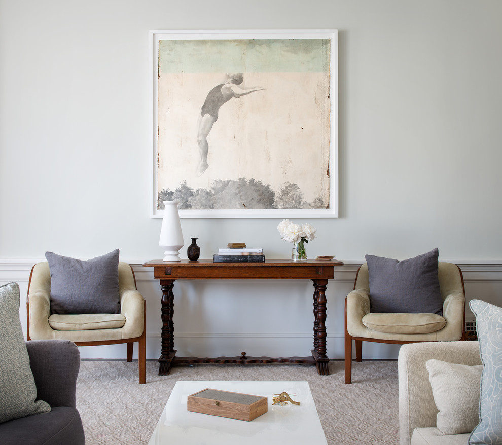 Иногда, особенно для классических интерьеров, используют парные консоли для оформления одинаковых простенков. Получается выразительный и гармоничный ансамбль, который подчёркивает общий стиль.