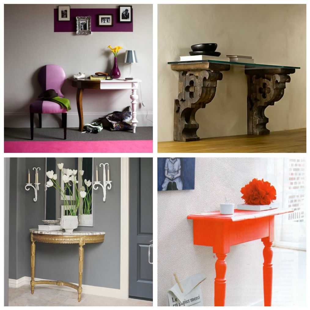 Существует множество разновидностей этого предмета интерьера. Однако у большинства из них есть основной элемент – горизонтальная столешница вытянутой формы, чаще всего прямоугольной или полукруглой. В остальном консоли могут отличаться друг от друга самым кардинальным образом.