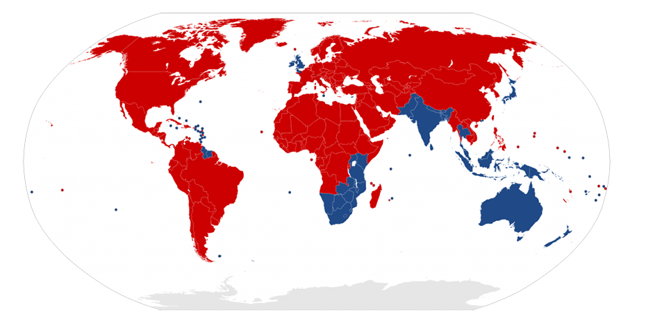 Less than 50 countries follow the left-hand drive rule. Source: Get in Gear