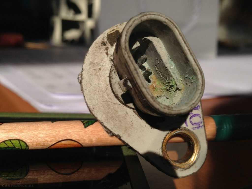 Проверка следует начинать с разъема. Нужно вынуть фишку с датчика и проверить ее на предмет загрязнения и целостности контактов, как на самой фишке, так и на датчике. Все контакты должны быть чистыми и целыми без следов масла, грязи и ржавчины.