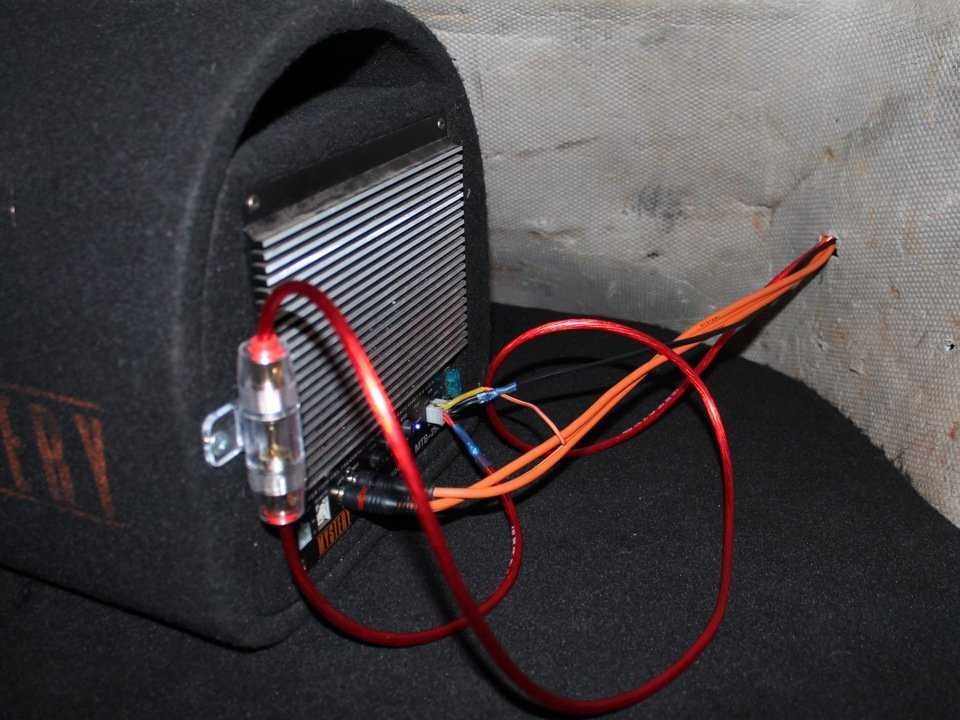 Внешняя поверхность обтягивается карпетом (в том числе и щель фазоинвертора). Карпет крепится эпоксидным клеем и/или мебельным степлером. Теперь динамик можно снова вставить и хорошо прикрутить. Завершающим этапом становится протяжка проводов от динамика на клемник. После того, как вся конструкция «усядется» и высохнет, саб можно подключать к усилителю. Для этого нужно знать, как подключить сабвуфер в автомобиле правильно.