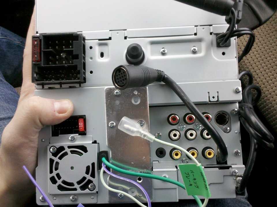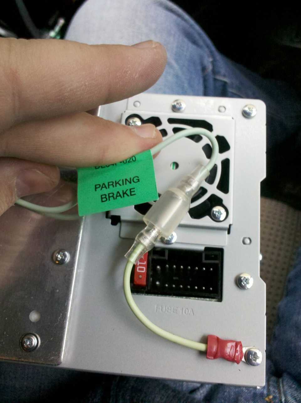 Далее подключение: С ISO — разъёмами делать ничего не нужно, просто подключаете к переходнику магнитолы.Чтобы работало воспроизведение видео на ходу, нужно провод ручника замкнуть на массу. Для этого используем комплектный удлинитель. Укорачиваем его и заводим под любой винт на корпусе магнитолы. Я дополнительно обжал его изолированным наконечником, чтобы было культурно.