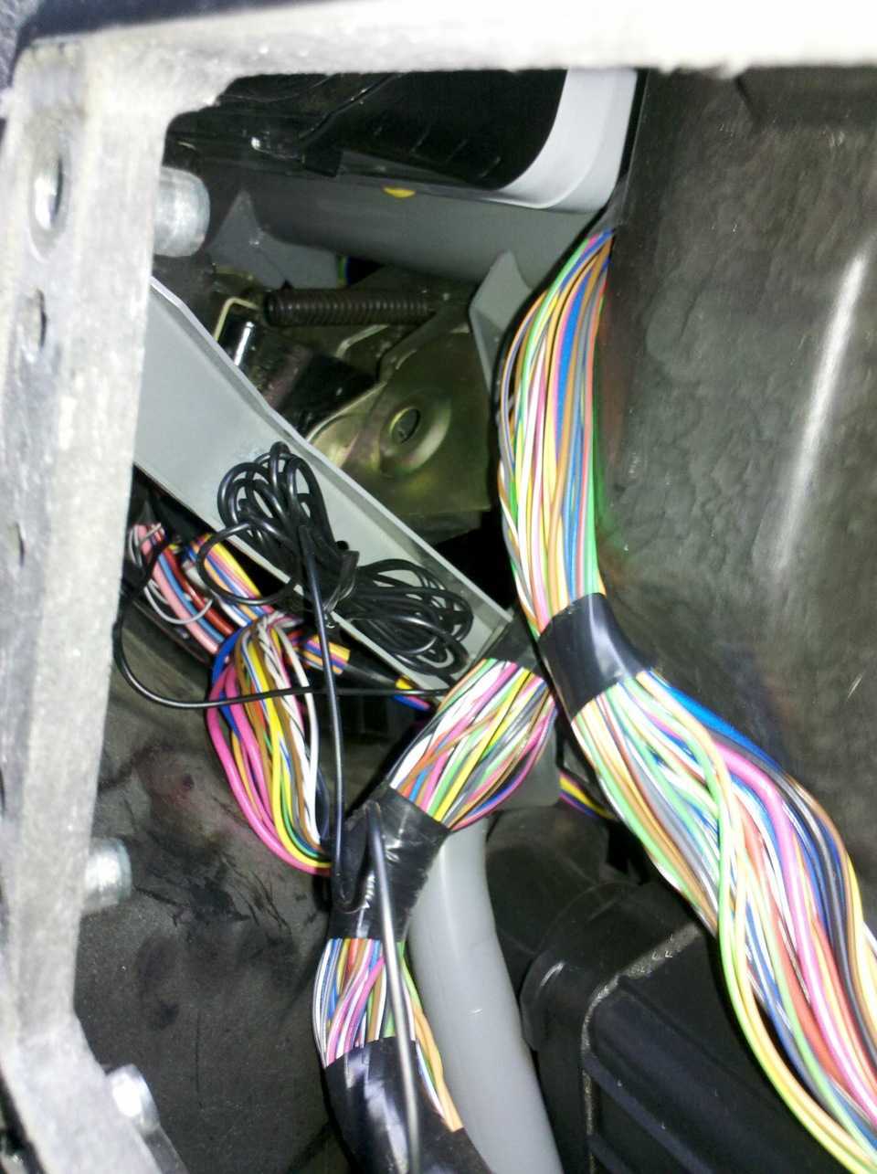 Далее нужно подключить микрофон. Сам микрофон ставим на кожух рулевой колонки, заводим провод к магнитоле, где-нибудь закрепив излишки. Я это сделал на штанге, слева от магнитолы (чёрный моток).