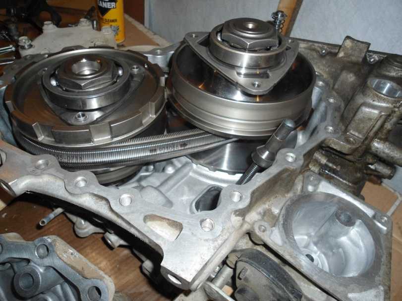 Демонтаж. После снятия вариатора с автомобиля с целью ремонта демонтируется крышка и вынимается вал. Далее вместе с осью снимается вторая крышка. После этого предоставляется возможность убрать масляный насос с крышкой. Для снятия цепного привода нужно демонтировать шестеренку. На следующем этапе снимается крышка с обратной стороны. Снимается ремень, демонтируются валы и шкивы.