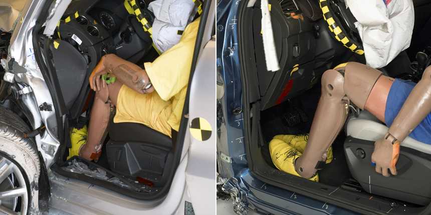Результат хорош: высшие оценки при обоих фронтальных и боковом ударах, испытаниях на эффективность подголовников и жесткость крыши. Более того, краш-тест с малым перекрытием водительской стороной машина выдержала образцово: смещения дверных петель, педалей, пола салона и приборной панели не превысили 4 см, а в некоторых точках и вовсе равны нулю. Рулевая колонка осталась практически на месте, а фронтальные и боковые подушки безопасности хорошо защитили голову и тело манекена.