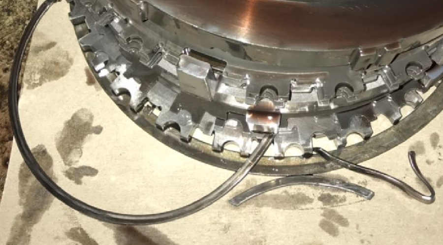 Первая самая часта проблема наших коробок это стопорные и пружинные кольца пакетов. Как правило все начианаетс с того, чтолопаются волнистые (пружинные) кольца, потом срывает стопорные кольца которые начинает крошить и перемалывать в АКПП закидивая куски в самые отдаленные части, вплать до гидроплиты.Вот пример того, во что превращается стопорное кольцо:
