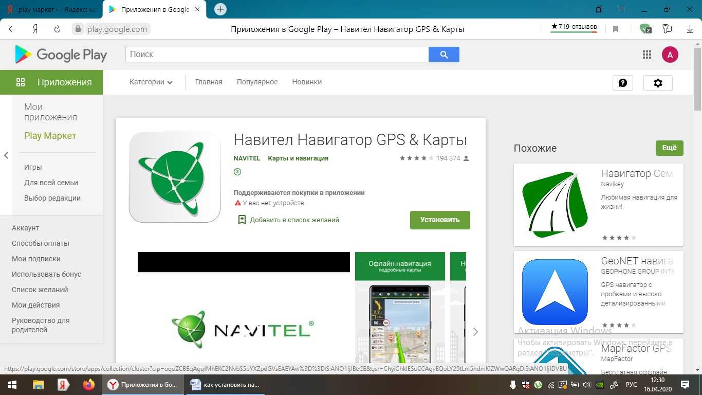 Установить навигатор из магазина Гугл Плэй можно с ПК или ноутбука, совершив следующие шаги: