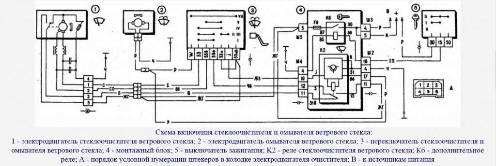 Принципиальная схема очистителя стекла на ВАЗ 2107