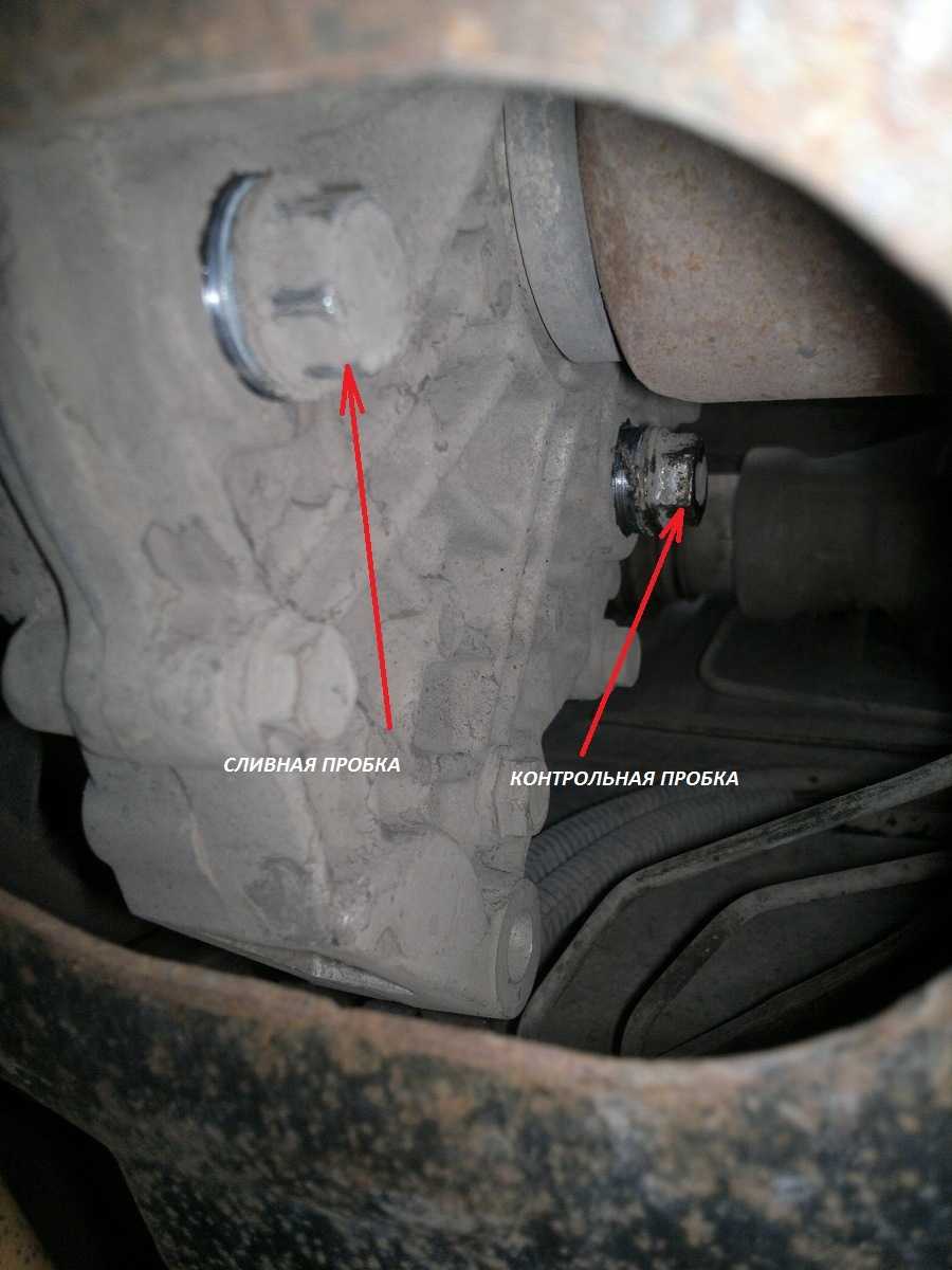 Сначала коробку нужно прогреть. Затем автомобиль помещают на яму, стопорят его и пытаются вывернуть одну пробку. Речь идёт о контрольной пробке (ключ «на 17»).