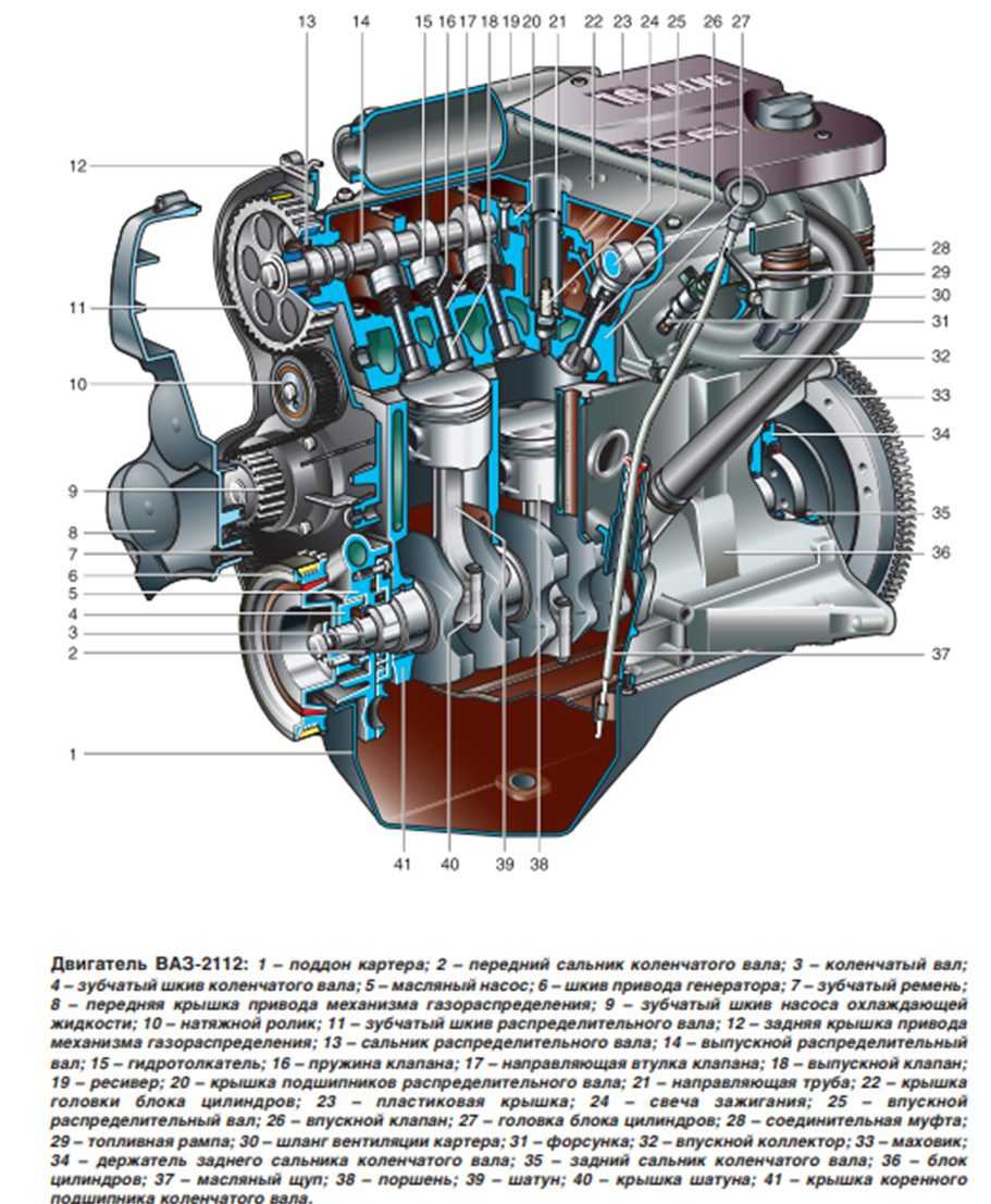 Движок ВАЗ 2112 является рядным, инжекторного типа с четырьмя цилиндрами, и имеет верхнее расположение распредвала, а также ременной привод ГРМ. При обрыве ремня двигатель может гнуть клапана, поэтому необходимо следить за тем в каком состоянии находится ремень. Как вариант можно поставить поршни с 124-го двигателя.