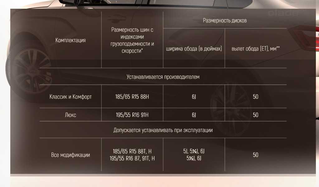 Альтернативные варианты колес на Lada Vesta в таблице.