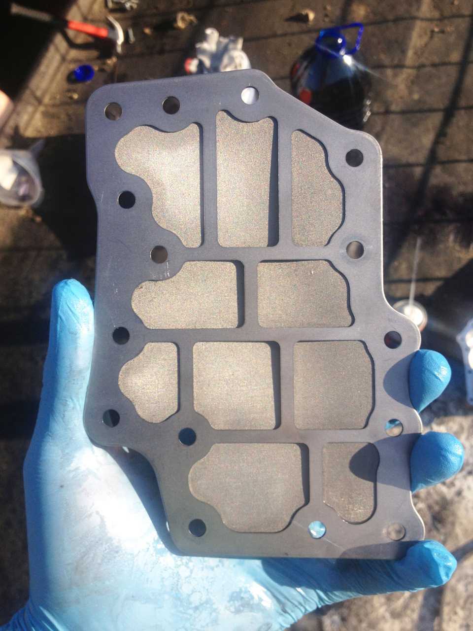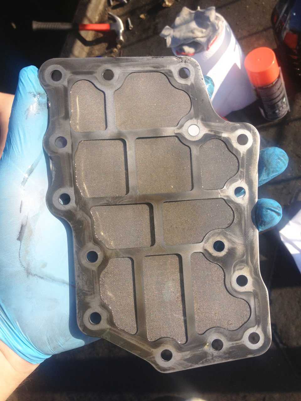 Этот товарищ сидит на 15 болтах, которые мы также с лёгкостью снимаем шуруповёртом. Собственно цикл циркуляции масла по системе начинается с него. Масло собирается в поддоне, потом посредством насоса фильтр всасывает его в себя, фильтрует и отправляет на охлаждение в радиатор, затем масло проходит через фильтр тонкой очистки и заходит очищенное и охлаждённое в рабочий контур вариатора, после чего сливается обратно в поддон и цикл на этом заканчивается.