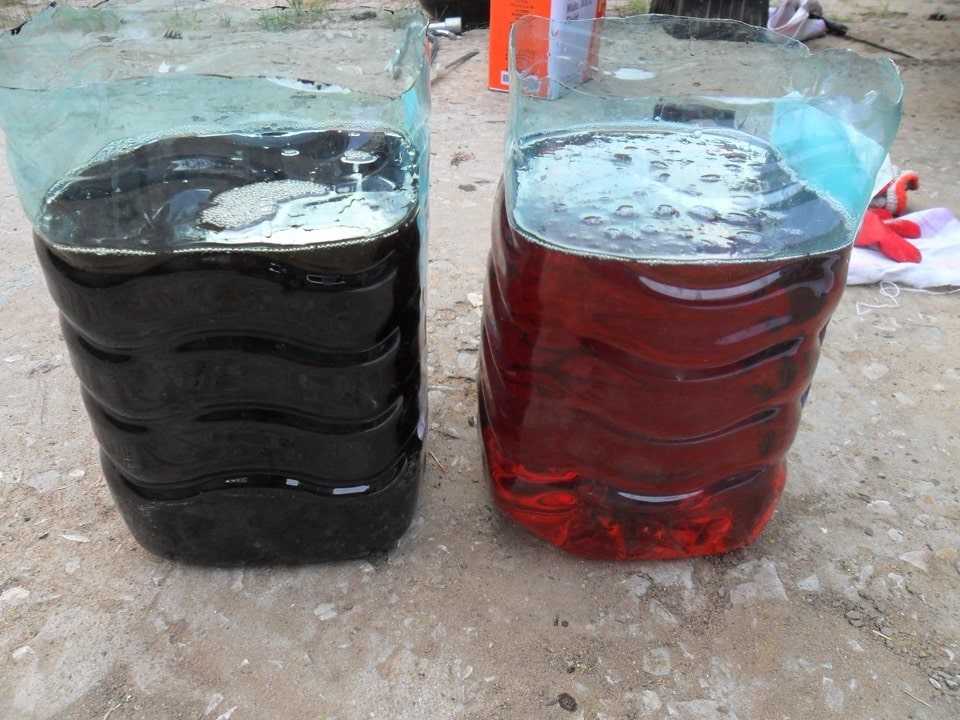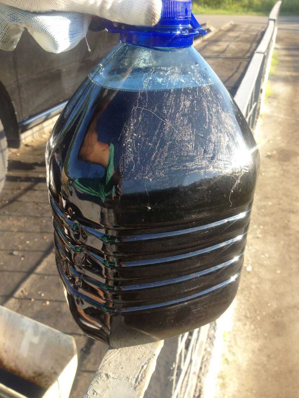 По старинному обычаю пробка улетела в тару с какахами, поэтому доставали мы её уже после слива и остывания отработки. А вот и старая отработавшая субстанция
