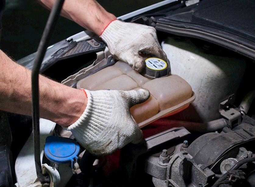 Теперь можно легко снять генератор, но нам еще мешает расширительный бачок. Полностью снимать его не надо, а нужно только снять отвести немного в сторону, предварительно сняв с кронштейнов. Шланги отсоединять не нужно.