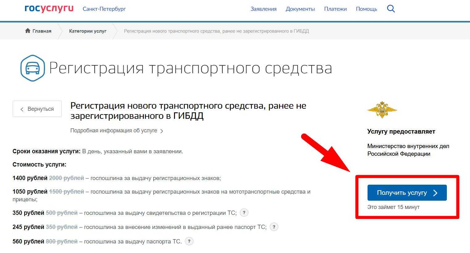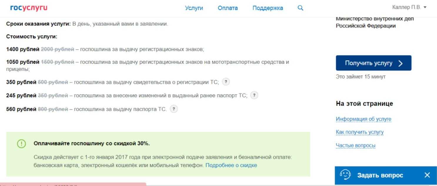 Ознакомиться с информацией о госпошлине и нажать на получение сервиса.