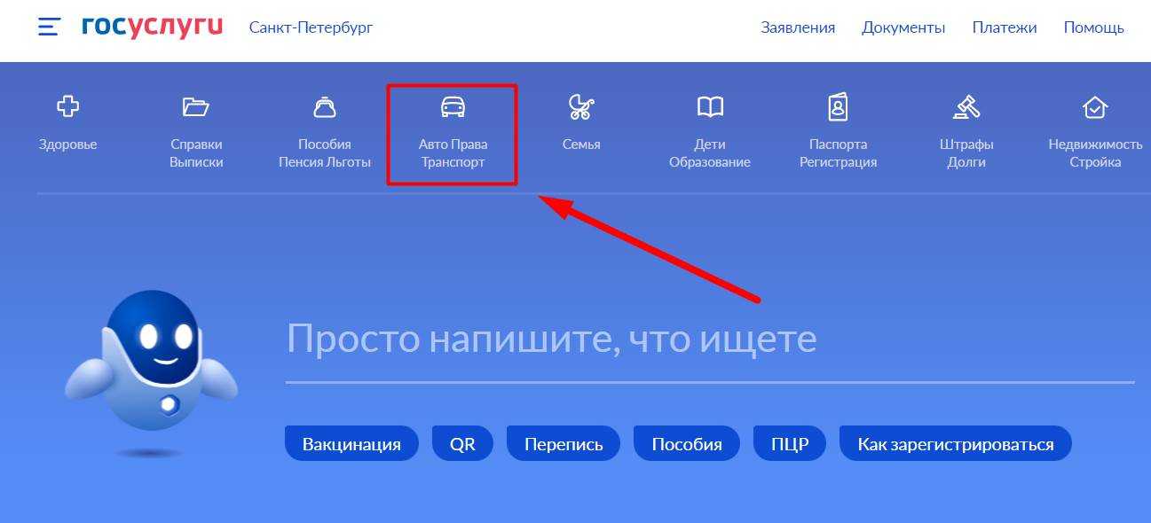 На главной странице выбрать раздел «Авто Права Транспорт»: