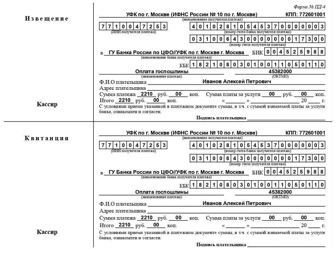 Квитанция об уплате госпошлины
