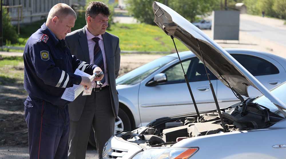 Сотрудник ГИБДД сверит вин-номер, цвет и марку автомобиля с данными в ПТС.