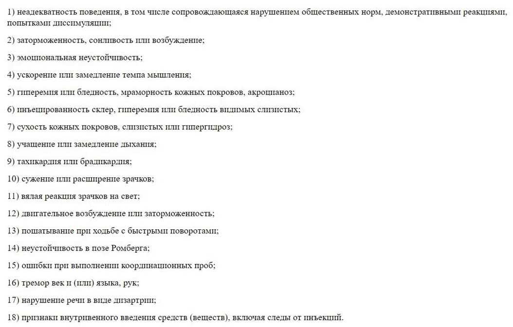 А выявить такую зависимость доктор может на основе одновременно 3 признаков из 18 возможных. Все эти признаки перечислены в абзаце 5 п. 10 Порядка прохождения медкомиссии: