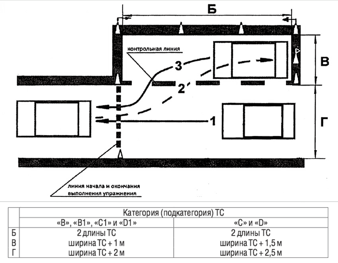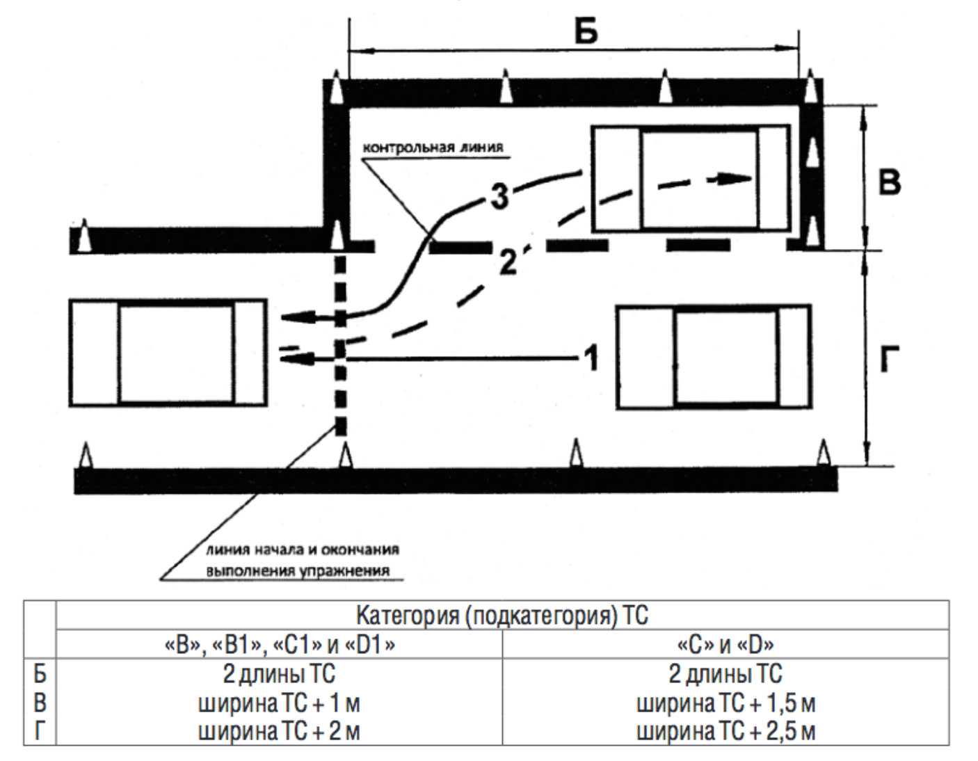 - Автомобиль не пересек контрольную линию «CB» во время выполнения упражнения — 3 балла.