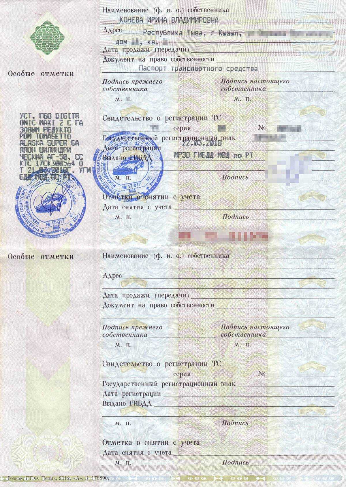 - Свидетельство регистрации и / или ПТС без записи об установке газобаллонного оборудования.