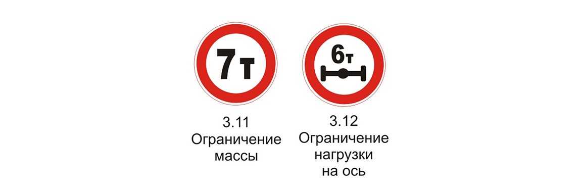 Совместно со знаками 3.11 и 3.12 зачастую устанавливают таблички, указывающие запрещенное направление движения или зону начала действия знака. Если на табличке изображены стрелки вправо, влево или двойная стрелка вправо и влево, то в указанном направлении поворот тяжеловесным автомобилям запрещен. Если же под знаком весит белая табличка с указанием количества метров, то проезд грузовиков, вес которых не удовлетворяет условию знака, будет запрещен в прямом направлении через указанное количество метров. Иногда с таким знаком также висит синяя табличка 6.15.1, указывающая рекомендуемый объездной маршрут для тяжеловесных авто.